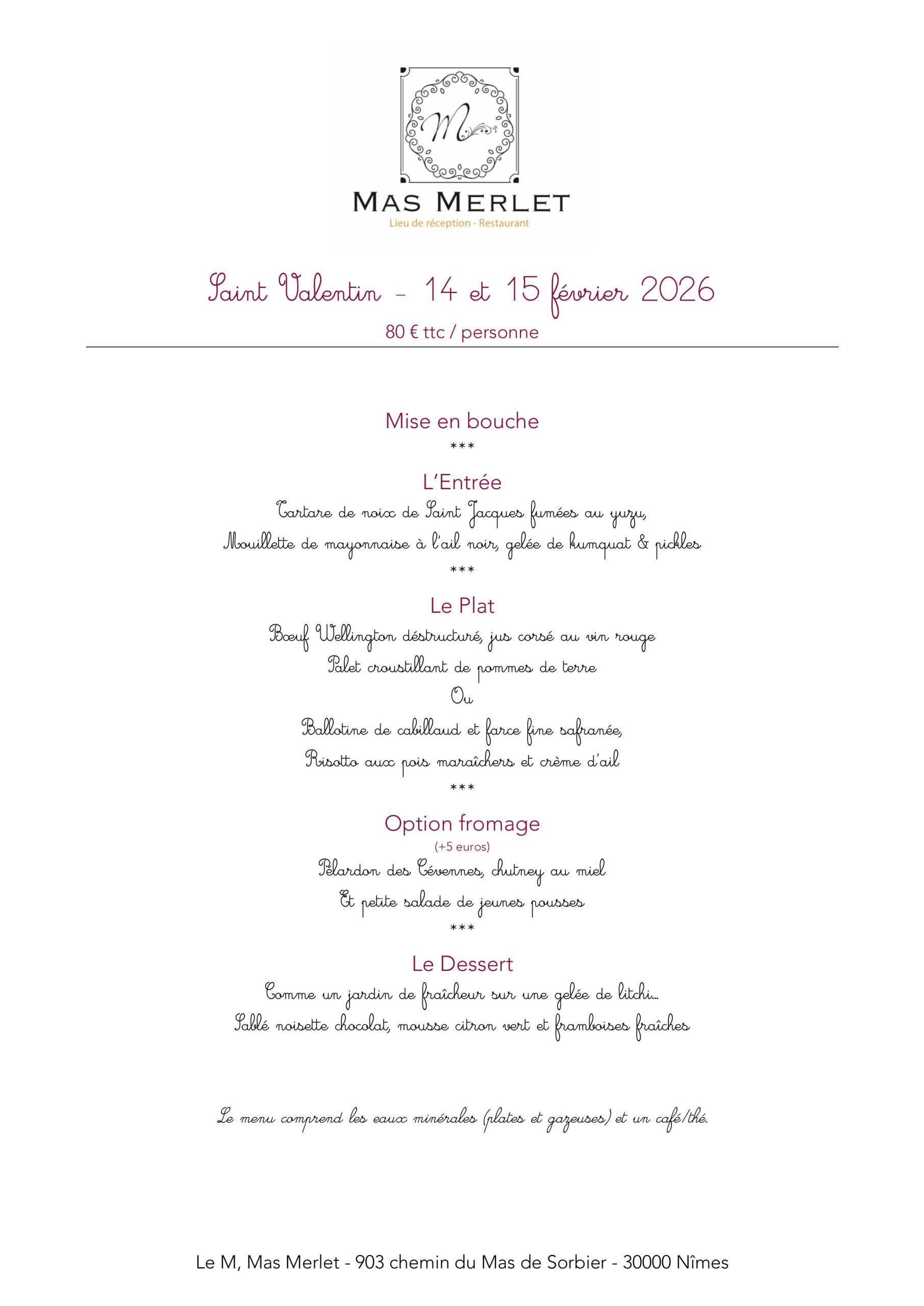 Découvrez le menu détaillé de la Saint-Valentin 2026 ci-contre.